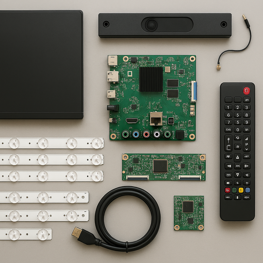 We sell high‑quality, tested components including mainboards, power supply boards, T‑Con boards, remotes, and cables. To keep your TV performing like new. Every item is inspected for reliability, backed by our warranty, and ready to ship for a perfect fit with your model.